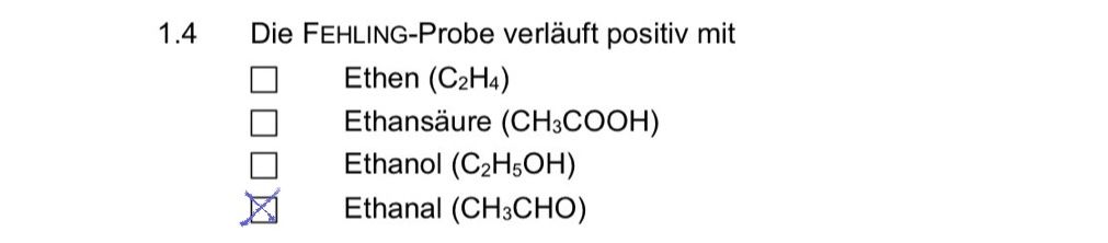 OH) ist ein Alkohol und reagiert nicht mit der Fehling-Lösung.